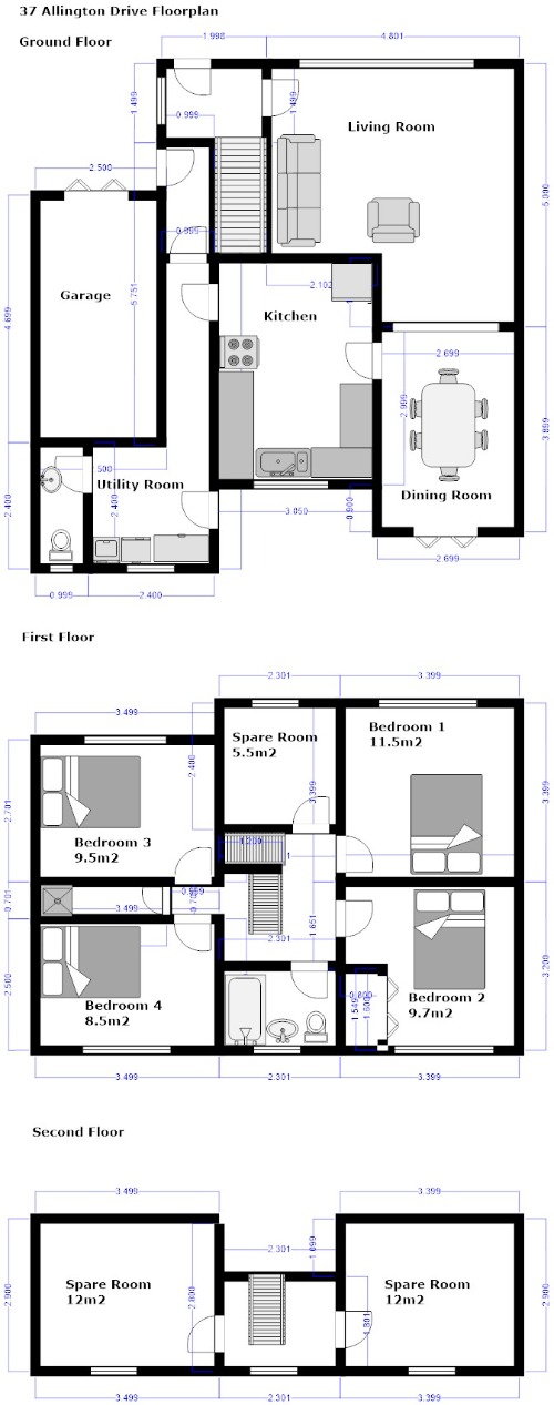 4 Double bedrooms (All bedrooms are 1st floor) each furnished with, double bed, wardrobe, drawers, desk & chair