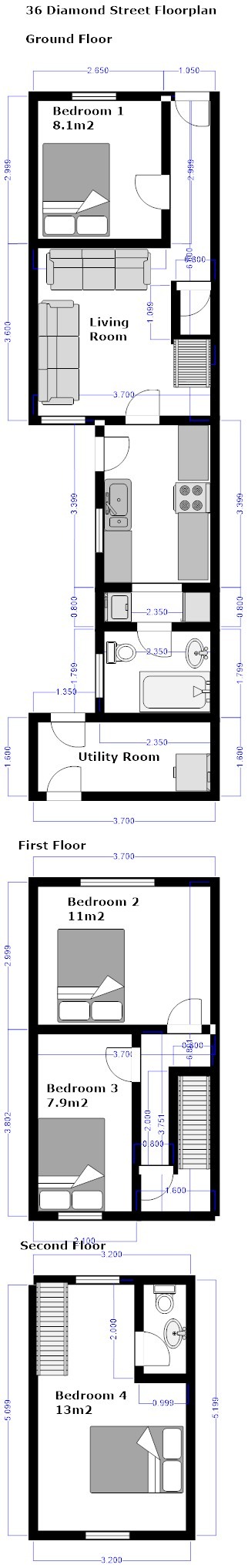 - 4 double bedrooms each furnished with wardrobe, drawers, desk and chair and each with TV aerial point.