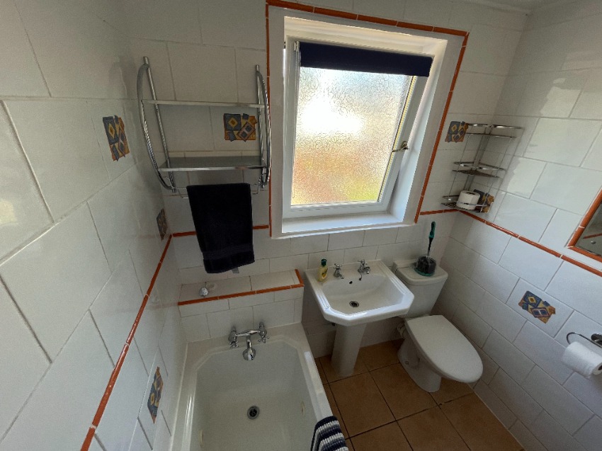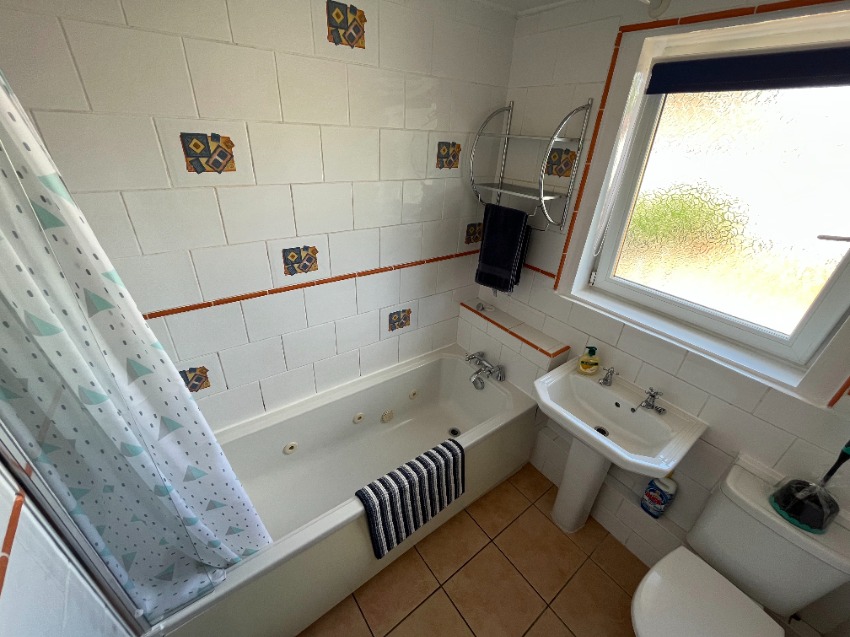 - 1st floor bathroom with shower over jacuzzi bath, wc and wash basin.