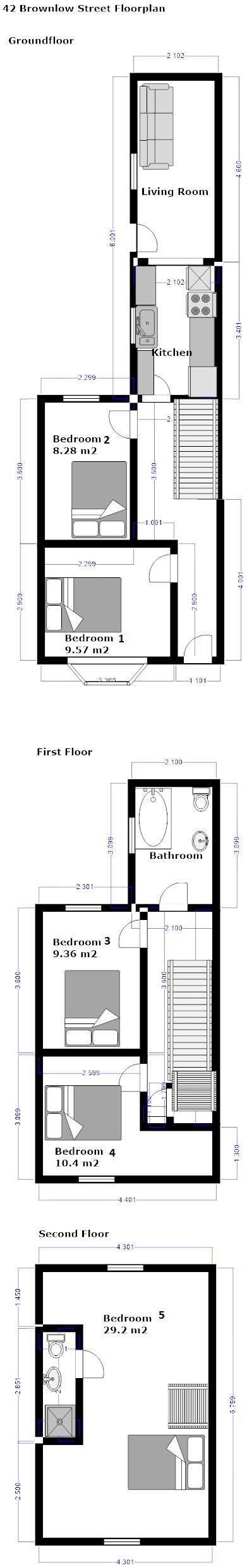 - 4 Double bedrooms and 1 Double En-Suite bedroom. All furnished with Wardrobe, drawers, desk, chair, double bed and wash basin