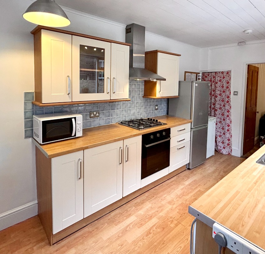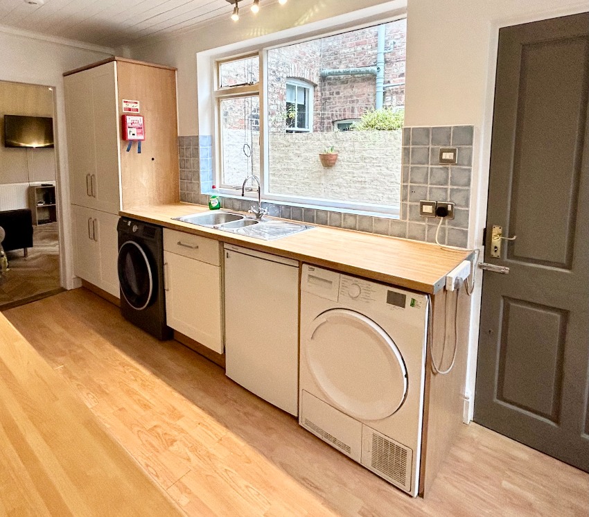- Impressive Kitchen/Diner with Fitted units with built in cooker and hob, fridge/freezer, washing machine, kettle and toaster
