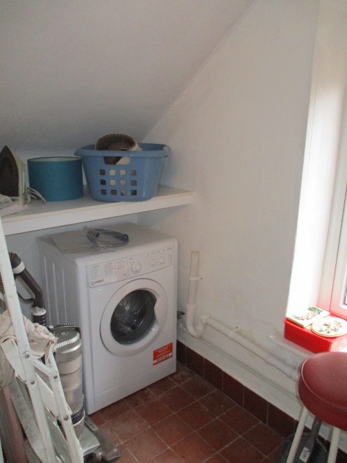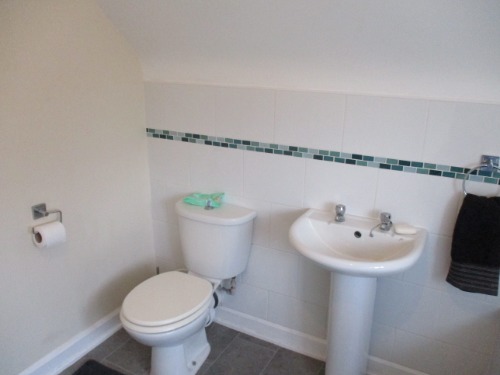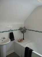 1st floor bathroom with shower fitted over the bath, wc and wash basin.