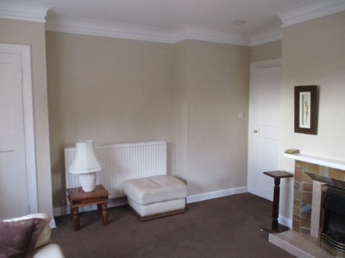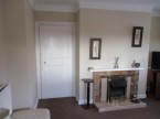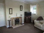Spacious Living room furnished with 2 seat leather sofa and matching chair and foot stool, LCD TV if required and feature electric fire.