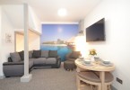 Large open plan Living/Dining Kitchen with attractive modern Kitchen fully loaded with built in appliances, Sleek L-Shaped sofa and large LCD TV