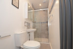 Modern shower room with shower, wc and wash basin.