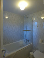 Separate bathroom with shower over bath, wc and and wash basin