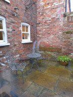 Outside: Private patio area with table and chairs